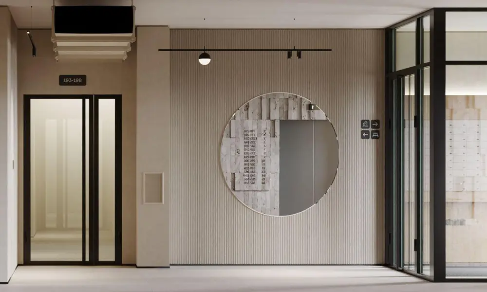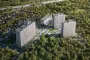 Монолитные дома отличаются повышенными прочностью и износостойкостью. Фасады облицованы фиброцементными панелями. Естественные текстуры материалов подчеркивают гармонию природы и архитектуры. Корзины для кондиционеров выполнены в той же цветовой гамме, что и фасады — минималистичное решение, которое делает облик зданий цельным.