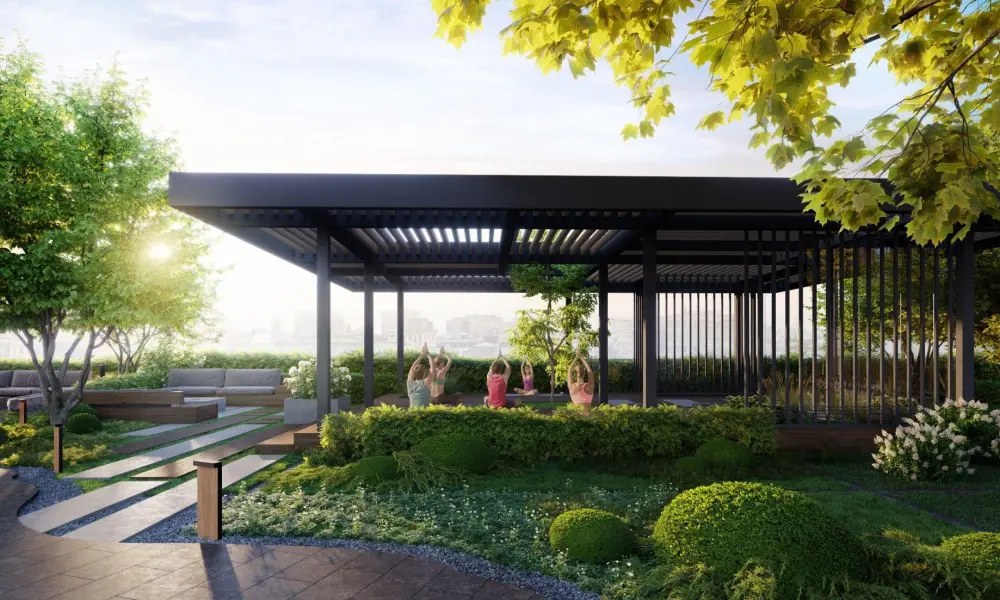Собственная приватная инфраструктура квартала покоряет с первого соприкосновения с ней. Территория комплекса, пожалуй, способна заменить целый город. Ландшафтный дизайн, парк в 15 га, подземный выход на набережную украшенный картинами — вся территория микрорайона детально продумана. Здесь не будет случайных людей. Дети смогут безопасно общаться на охраняемой территории. А взрослые могут посвятить свободное время любимым занятиям в японском саду, лаунж-зонах или на площадке для воркаута.