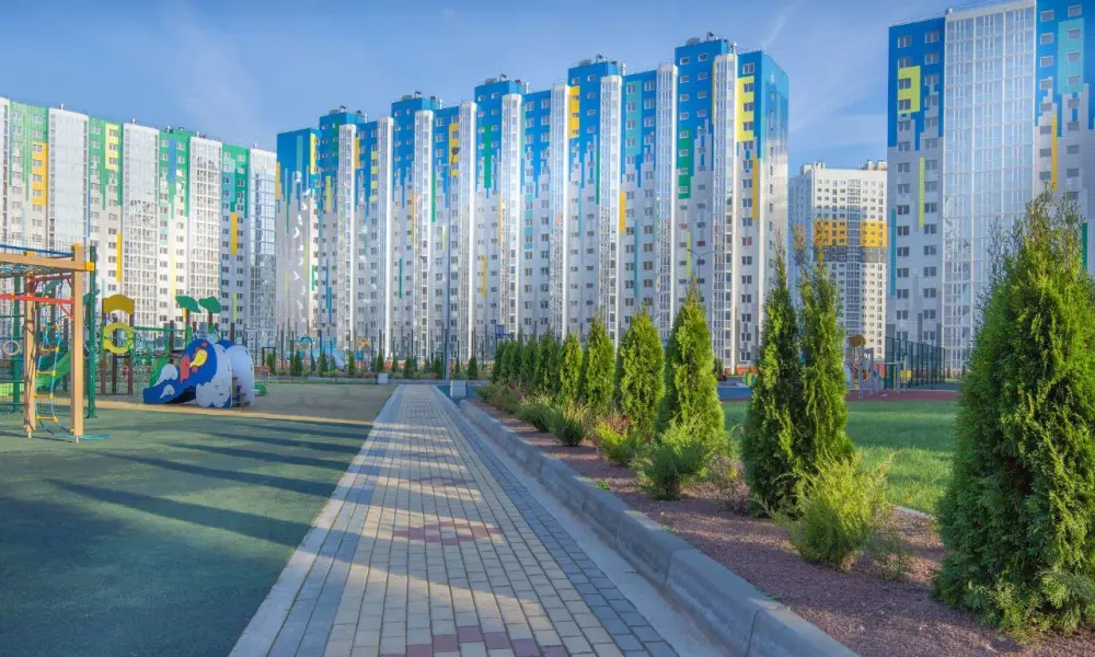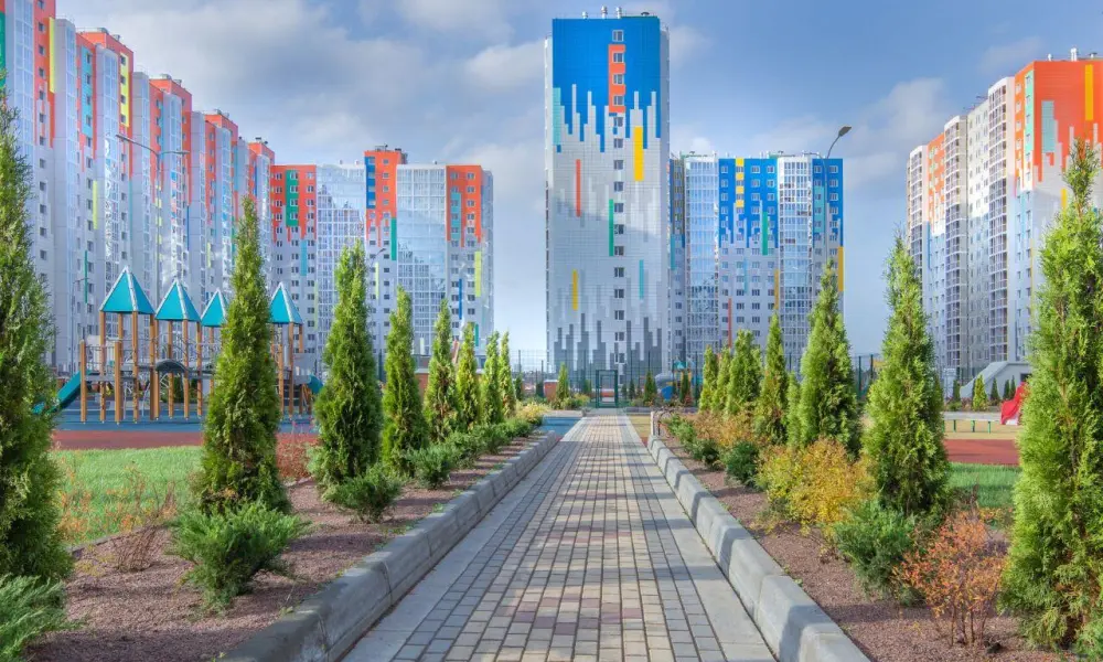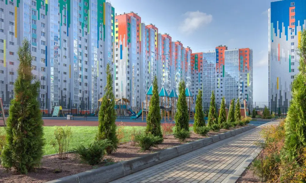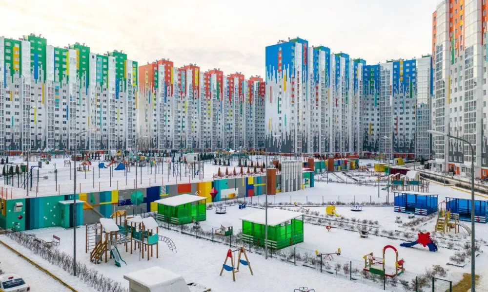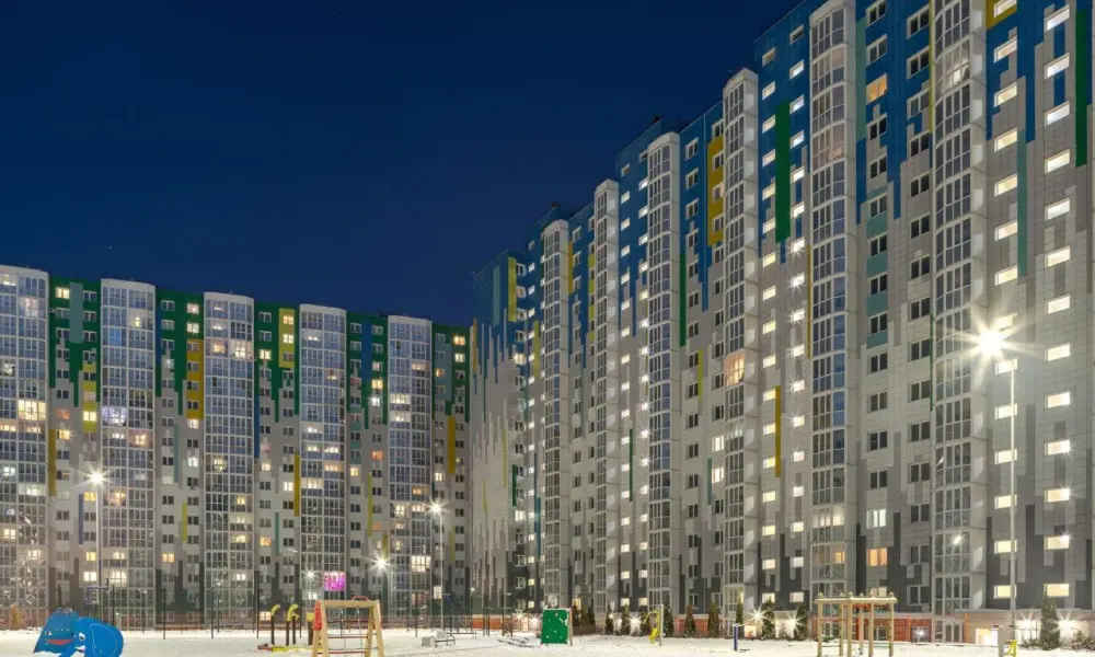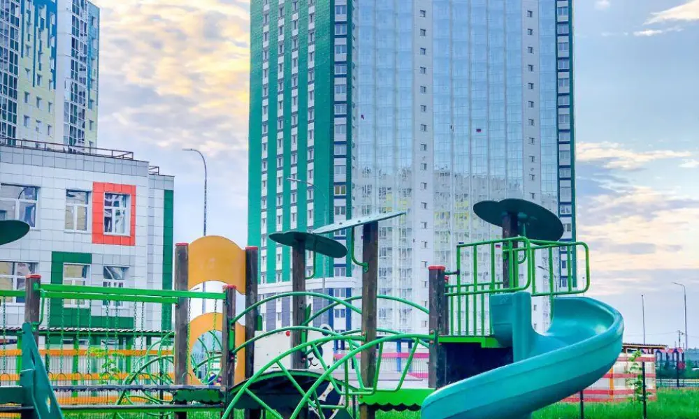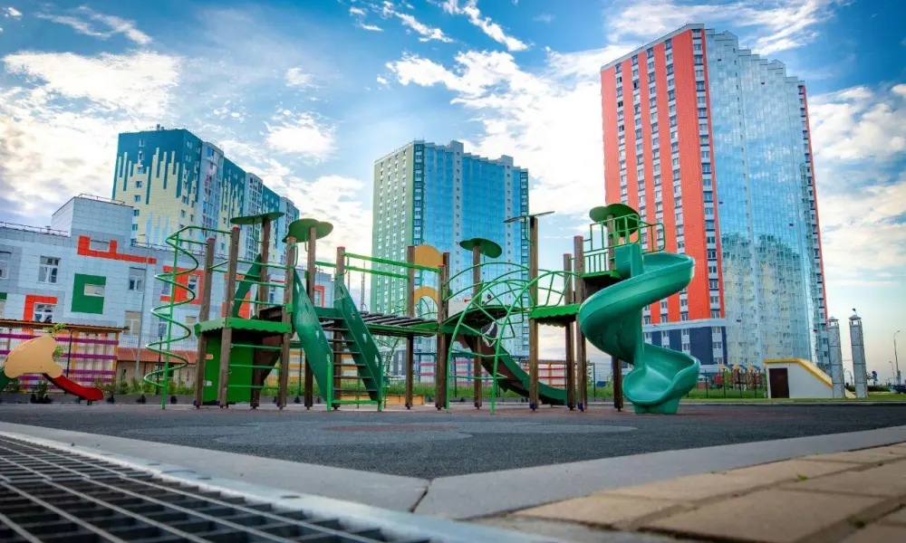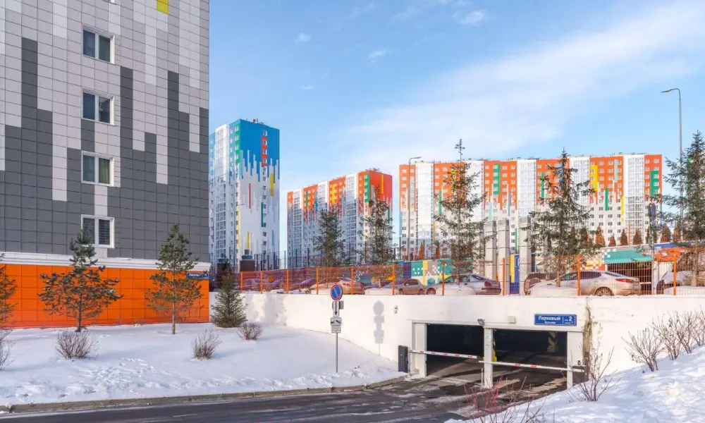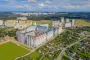 Комплекс из 15 жилых домов и прилегающих зданий собственной инфраструктуры образуют безопасное полузамкнутое пространство, внутри которого расположено все необходимое для комфортной жизни, учебы, отдыха и спорта. Здесь реализована программа «Двор без автомобилей», поэтому открытые парковочные места размещены за пределами территории.