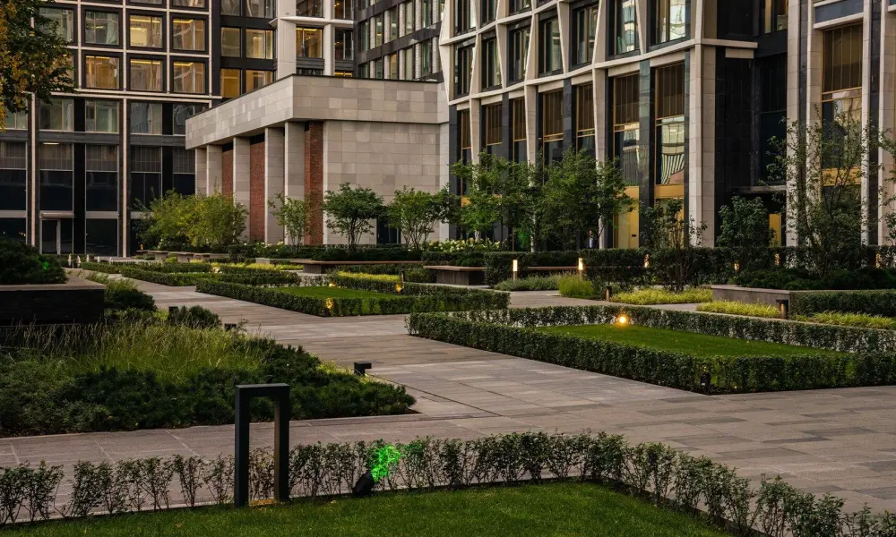 Общее парковое пространство квартала — 5,5 га, из них 3 га отведено под частный парк эксклюзивно для резидентов. Большой фонтан, аллеи для прогулок, крупномерные деревья, арт-инсталляции, водные глади, детские площадки и воркаут-зона создают гармоничное сочетание жизни на природе со всеми преимуществами мегаполиса.
