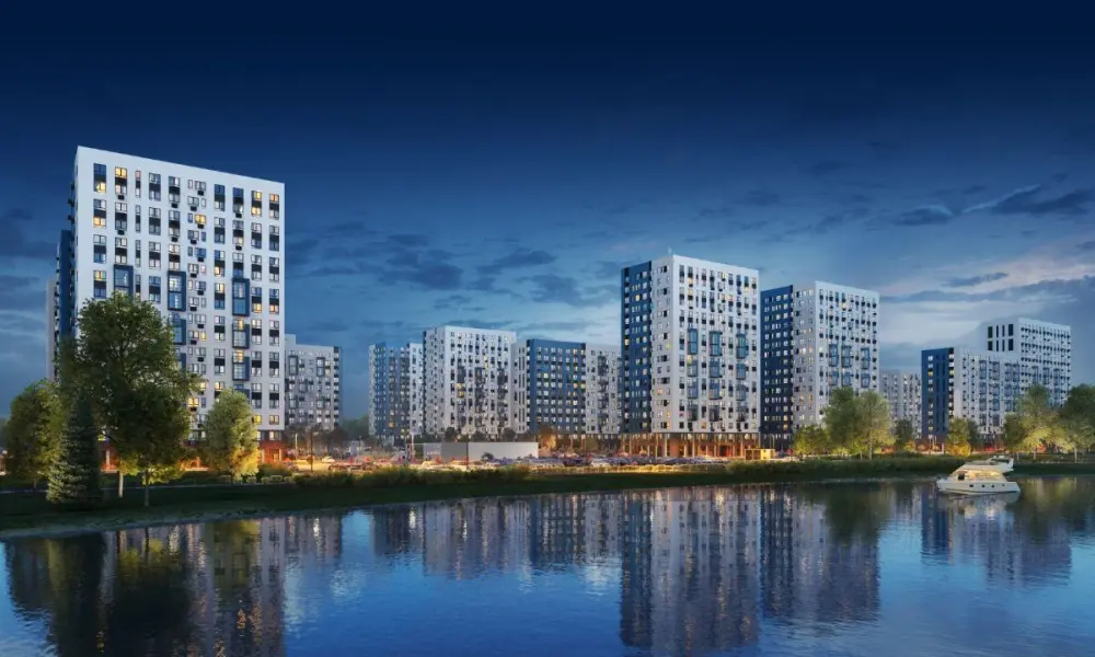 В интерьере холлов продолжается тема реки: имитация водопадов на стенах, подсветка с ощущением ряби на воде, много солнечного света сквозь панорамные окна.На минус 1-м этаже будут кладовые помещения для хранения сезонных вещей, а в лобби — места для колясок. Все входы в подъезды расположены на уровне земли: никаких преград на пути домой.Отделка