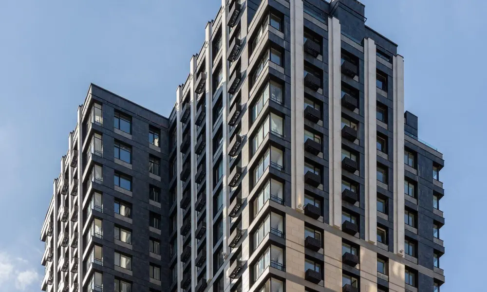 Мотив фасадов – ритм жилых окон, использование отступов в верхней части башен, декоративные вставки на стилобате, отсылают к архитектуре жилых зданий Нью-Йорка 30-х годов, перекликаясь со «сталинским ампиром». Это придает комплексу элегантную торжественность, и сохраняет историческую преемственность с московской архитектурой.