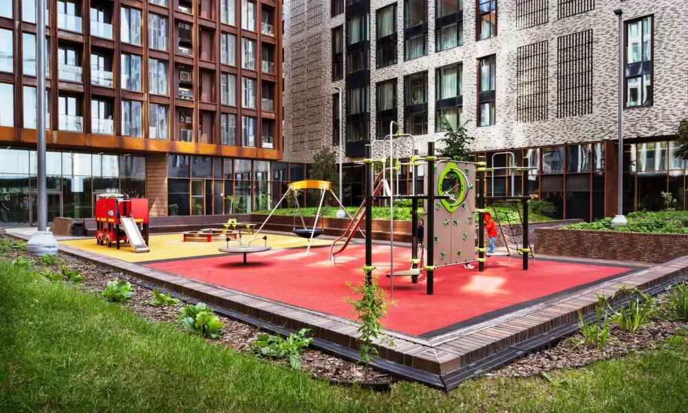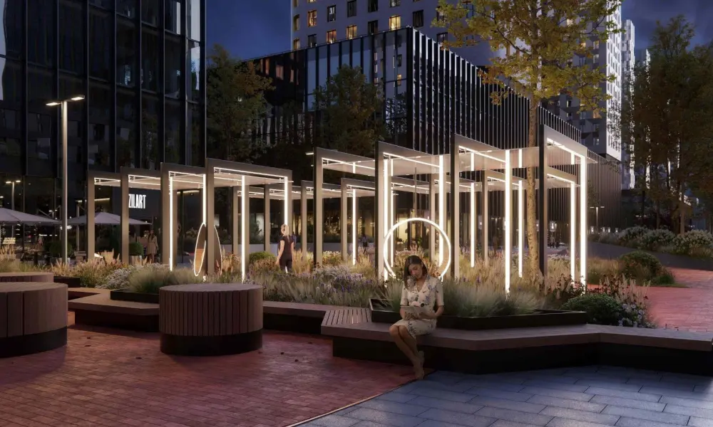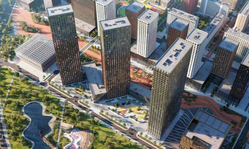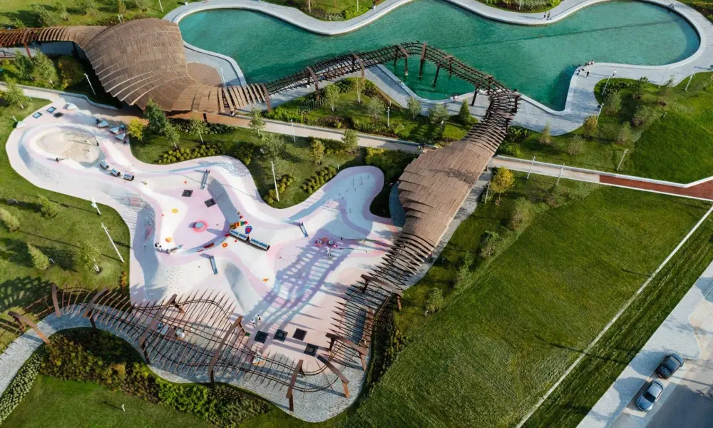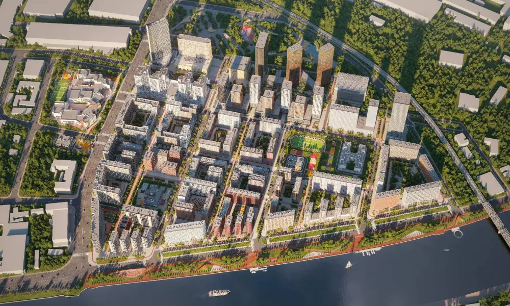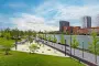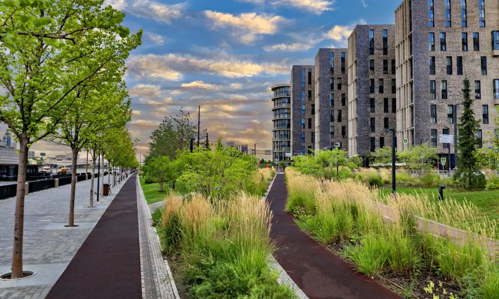 Половина территории жилого комплекса отдана под зеленые насаждения. Здесь даже есть два собственных парка: «Тюфелева роща» и парк на набережной Марка Шагала. Первый, созданный по проекту ландшафтного дизайнера Джерри Ван Эйка, имеет в своем составе искусственный пруд и раскинулся на площади 10 Га. Второй, с местами отдыха и торговыми павильонами, тянется вдоль новой набережной столицы на протяжении одного километра.